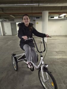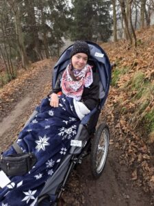 je slečna s detskou mozgovou obrnou, kavadruspastickou formou. Rada chodí s rodičmi na čerstvý vzduch a na miesta, kde sa nedá dostať obyčajným vozíkom. Veľmi sa teší, že jej Konto Bariéry prispelo na tento cyklovozík, ktorým prejde aj zložitejší terén.