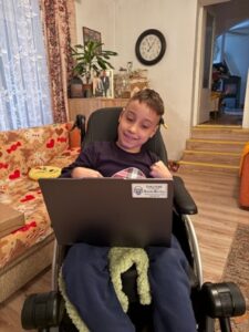 Zdravotne znevýhodnený Filipko sa môže s pomocou špeciálne nastaveného notebooku v škole kvalitnejšie vzdelávať.